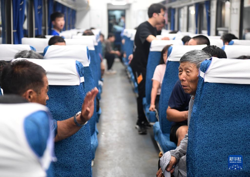 8月2日,K396次、Z180次列車(chē)的滯留旅客乘坐轉運客車(chē)前往北京豐臺站。