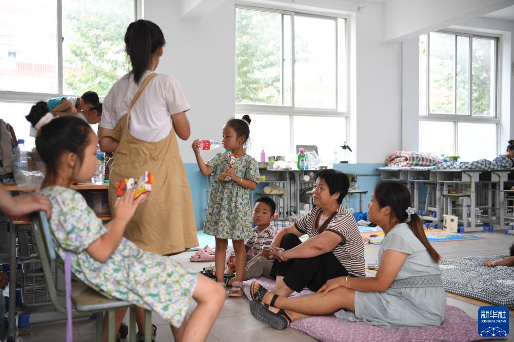 8月3日,群眾在涿州市第三中學(xué)安置點(diǎn)內休息。