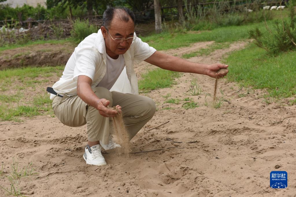8月2日,百順展示林間小路上的沙子,這里過(guò)去全是沙地。