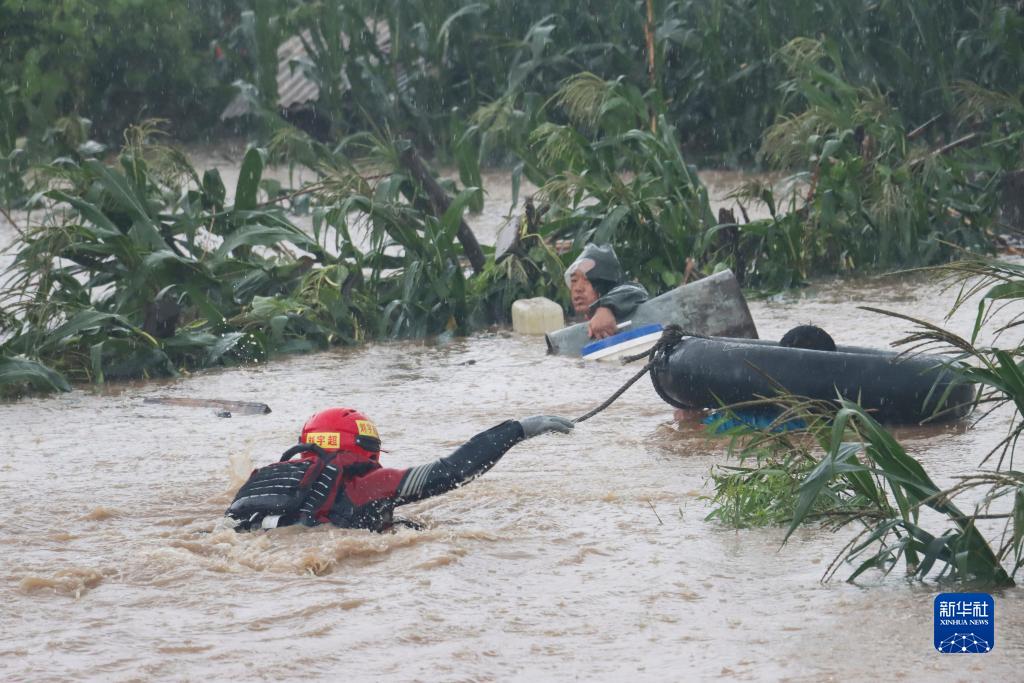8月4日,哈爾濱市森林消防支隊特勤大隊消防員在尚志市一面坡鎮萬(wàn)山村跳入激流水中,營(yíng)救被困群眾。