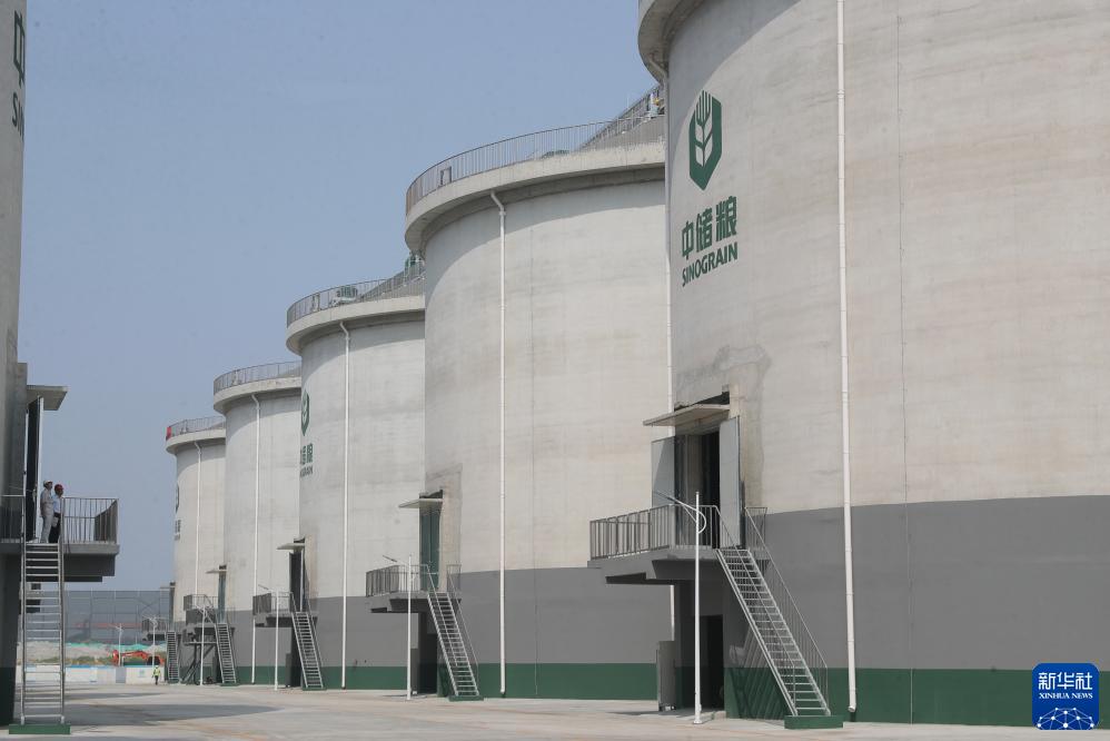 這是中央儲備糧秦皇島直屬庫有限公司海港糧食儲備基地的糧倉(8月4日攝)。