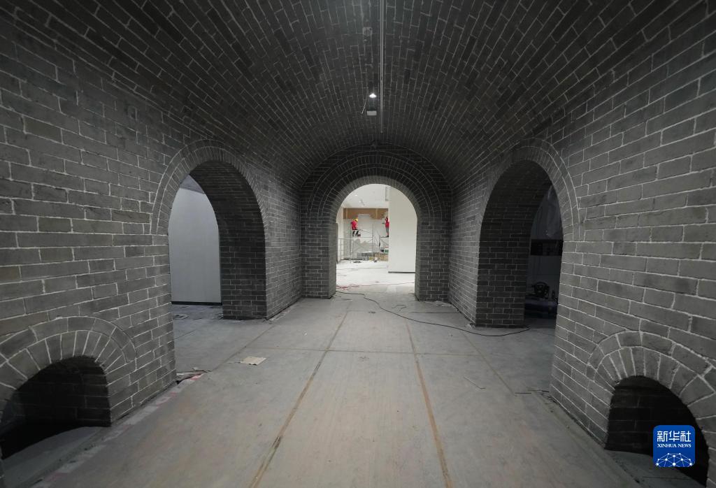 8月4日,工人在山海關(guān)中國長(cháng)城博物館進(jìn)行內部裝修施工。