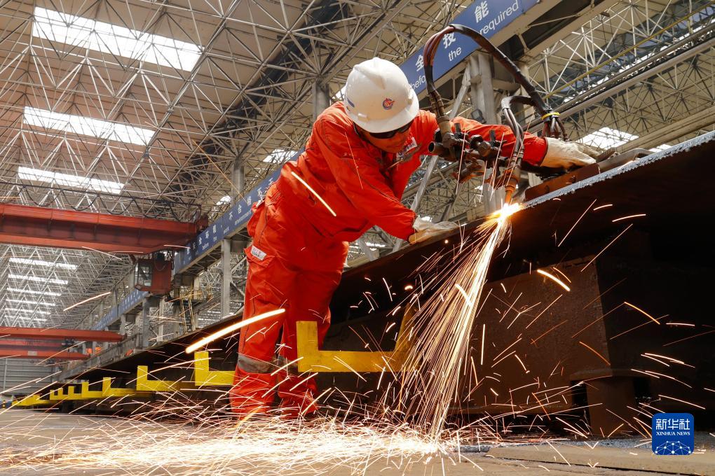 8月4日,工人在建造現場(chǎng)進(jìn)行鋼材切割作業(yè)。