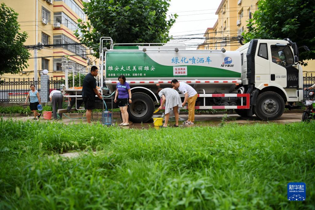8月4日,河北省涿州市新星小區居民從供水車(chē)里接水。