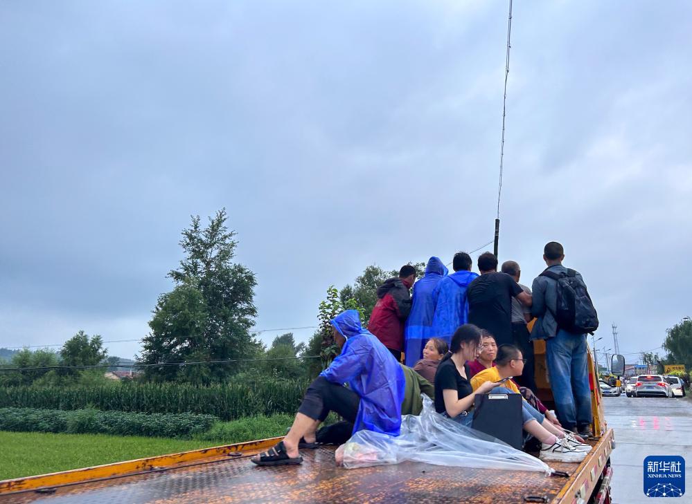 8月4日,吉林省舒蘭市開(kāi)原鎮部分村民在轉移途中。