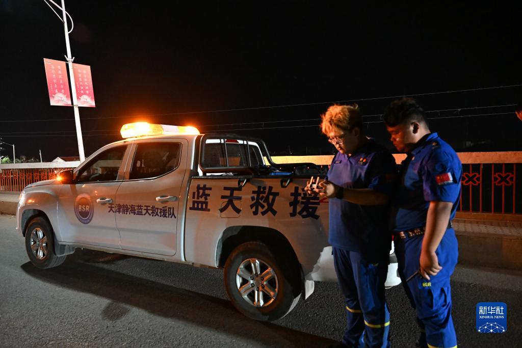 8月4日,天津靜海藍天救援隊隊員使用熱成像無(wú)人機確認村內是否還有居民未撤離。
