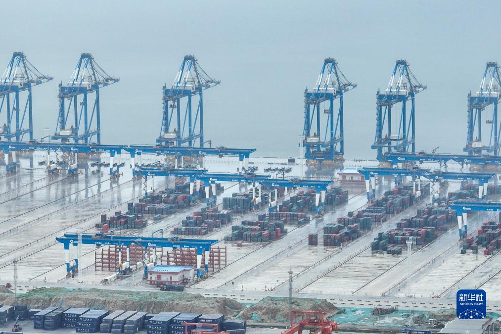 這是7月22日拍攝的北部灣港欽州自動(dòng)化集裝箱碼頭(無(wú)人機照片)。