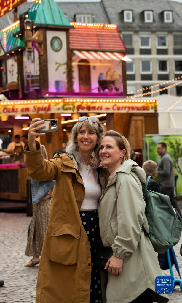 8月4日,人們在德國法蘭克福的“美因河節”現場(chǎng)自拍。