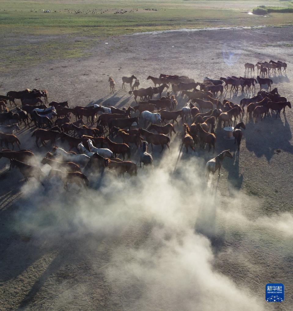 這是8月5日在土耳其開(kāi)塞利省蘇丹里迪國家公園航拍的馬群(無(wú)人機照片)。