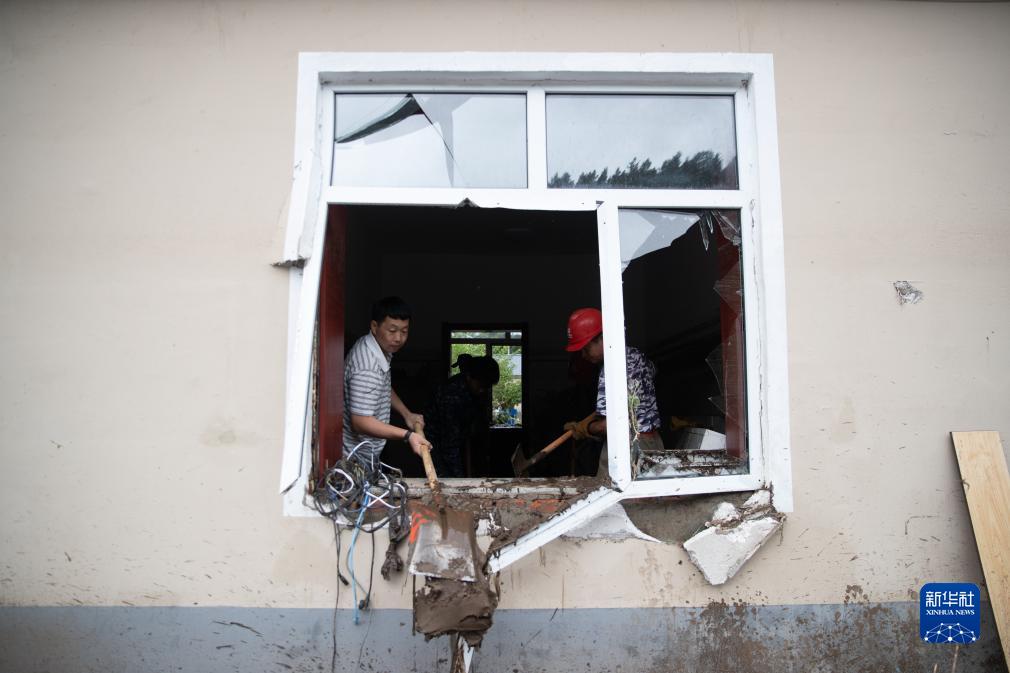 8月6日,在大海林林業(yè)局有限公司自來(lái)水供應站,工作人員在清理室內淤積。