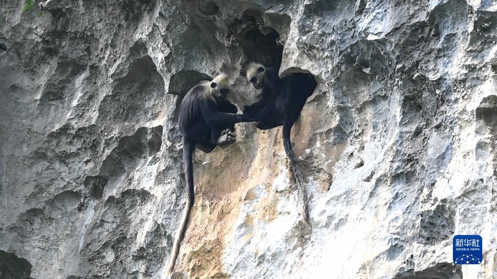 白頭葉猴,頭頂高聳著(zhù)一撮白毛,是我國特有的國家一級重點(diǎn)保護野生動(dòng)物,種群數量稀少,主要分布在廣西崇左市左江和明江之間約200平方公里的喀斯特石山地區。白頭葉猴還有個(gè)好聽(tīng)的名字——“石山精靈”。