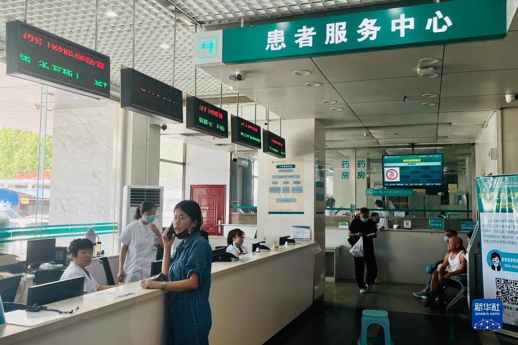 8月6日,在平原縣第一人民醫院患者服務(wù)中心內,患者向值班醫生咨詢(xún)情況。