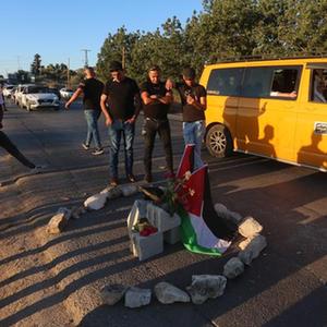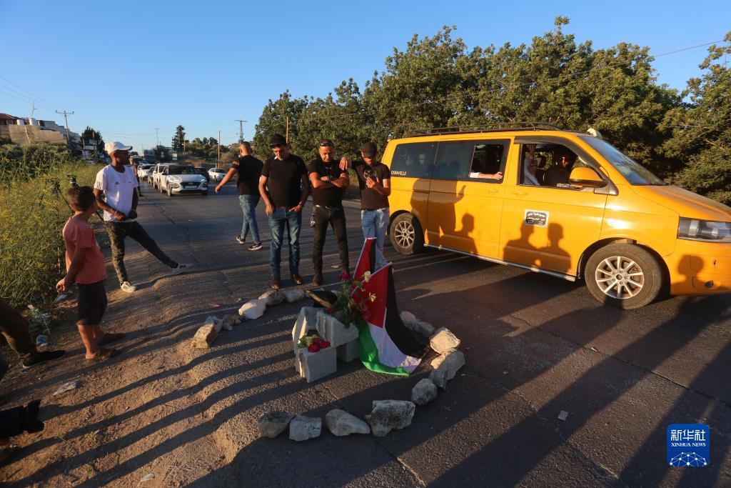 8月6日,人們在約旦河西岸城市杰寧的事發(fā)地點(diǎn)擺放獻花等物品。