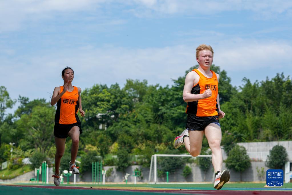 8月4日,重慶市特殊教育中心田徑隊隊員在進(jìn)行短跑項目訓練。