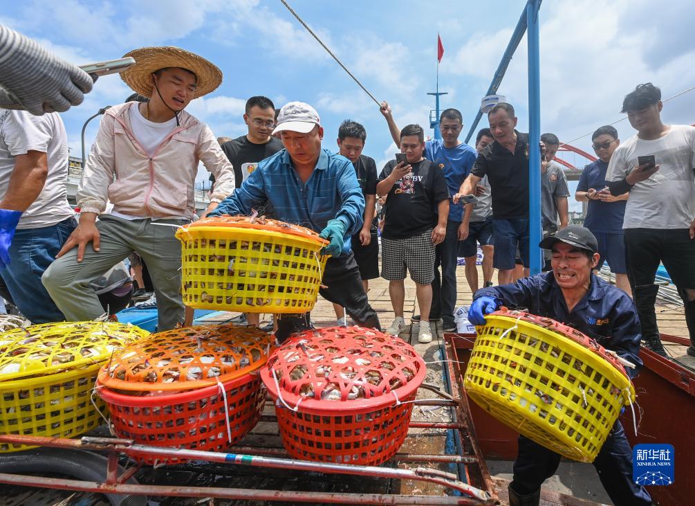 8月6日東海部分解禁開(kāi)漁,浙江舟山市首批申請了專(zhuān)項捕撈特許的漁船(桁桿拖蝦、籠壺類(lèi)、刺網(wǎng)和燈光圍(敷)網(wǎng)四種類(lèi)型漁船)結束休漁,開(kāi)赴東海海域,進(jìn)行捕撈作業(yè)。漁運船和漁船一同抵達作業(yè)漁場(chǎng),捕撈上來(lái)的魚(yú)獲由漁運船先行送回港口碼頭,漁船則留在海上繼續生產(chǎn),因此8月7日首批新鮮的梭子蟹、鯧魚(yú)、大小黃魚(yú)等就能來(lái)到沈家門(mén)漁港,豐富百姓的餐桌。