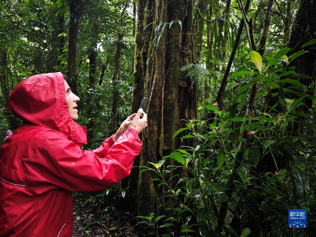 7月24日,一名游客在哥斯達黎加蒙特韋德云霧森林生物保護區內欣賞森林中的植物。