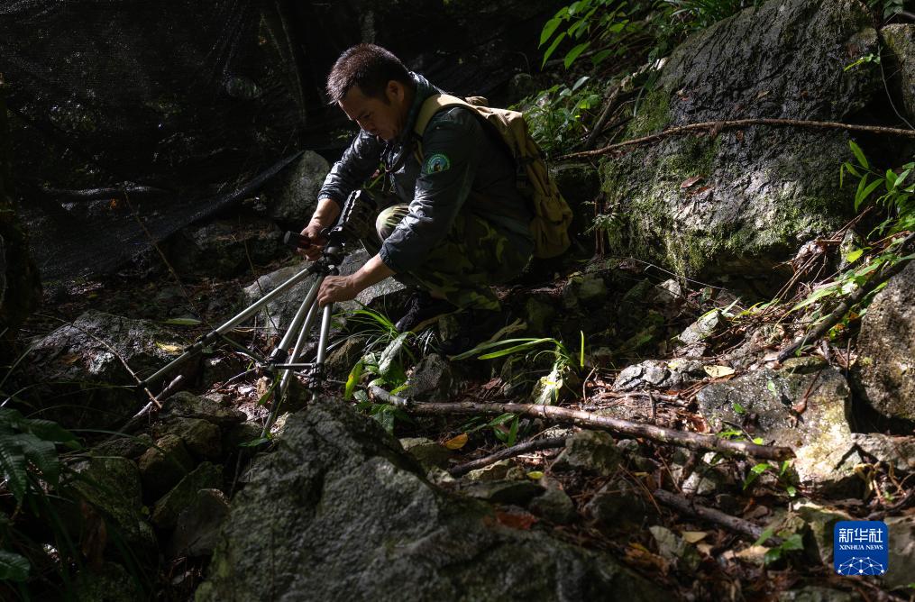 8月4日,梁志章在保護區巡視時(shí),把被撞倒的紅外線(xiàn)相機扶起來(lái)。