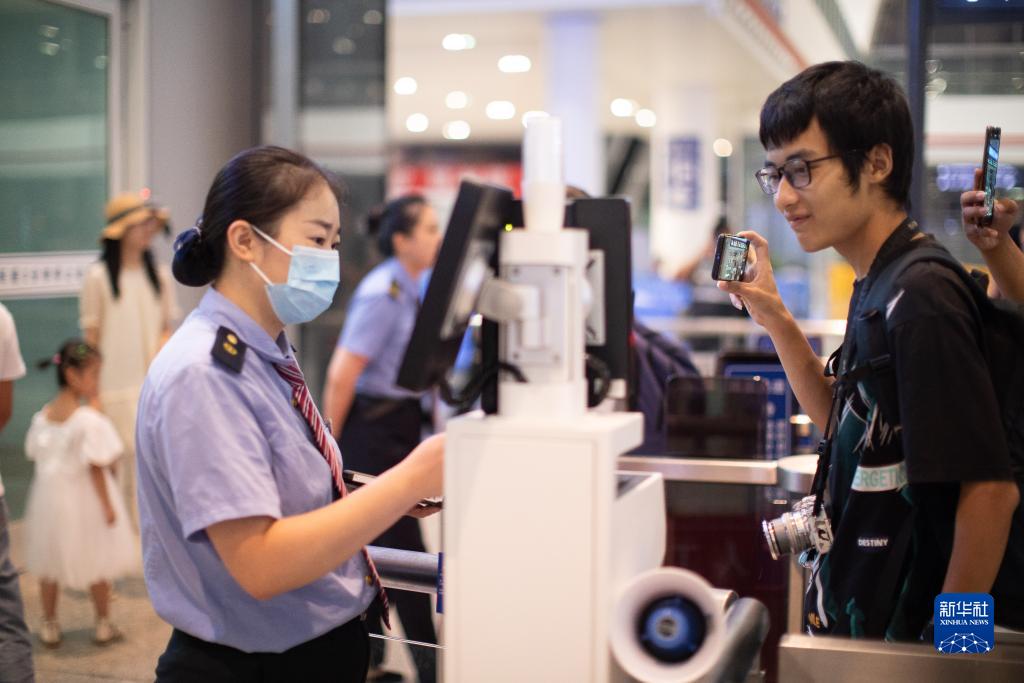 8月8日,乘坐D6171次列車(chē)的旅客在檢票進(jìn)站時(shí)拍攝留念。