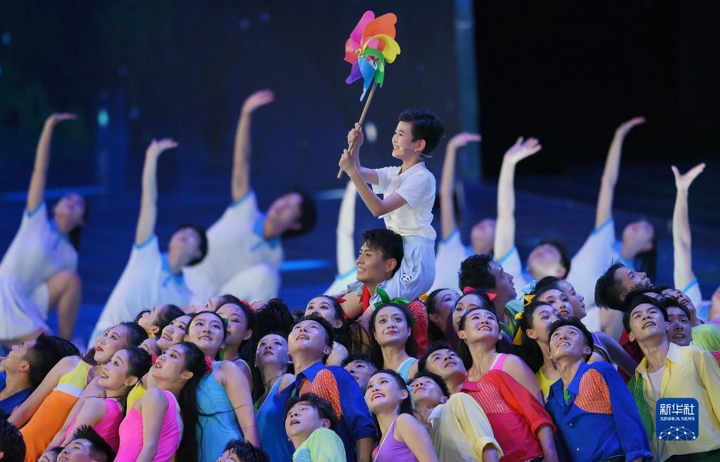 8月8日,演員在閉幕式上表演。