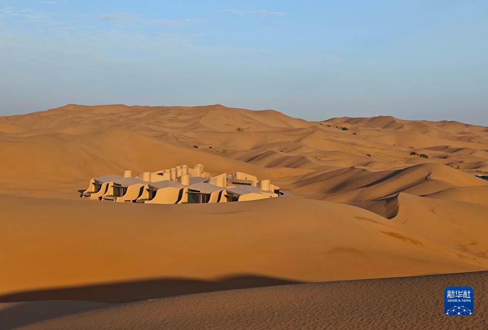 庫布其沙漠中的一處休閑沙屋(8月6日攝)。
