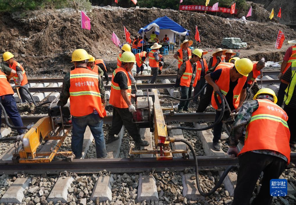 8月8日,工人們抓緊搶修豐沙線(xiàn),確保通車(chē)順利。