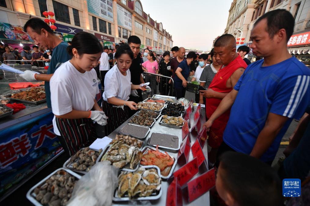 8月6日晚,在山東省青島市城陽(yáng)區舉行的首屆青島國際海鮮節活動(dòng)上,游客在選購各式海鮮。