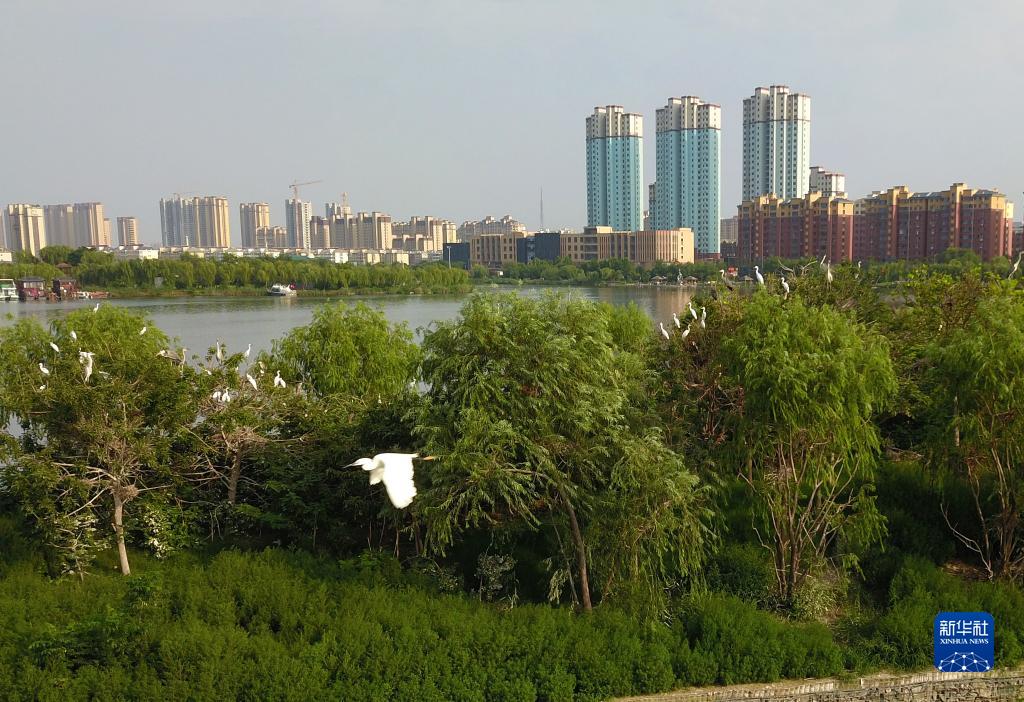 今年入夏以來(lái),大量蒼鷺、白鷺等野生鳥(niǎo)類(lèi)在山東省成武縣的文亭湖濕地內棲息。