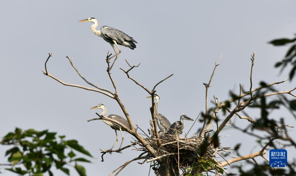 今年入夏以來(lái),大量蒼鷺、白鷺等野生鳥(niǎo)類(lèi)在山東省成武縣的文亭湖濕地內棲息。