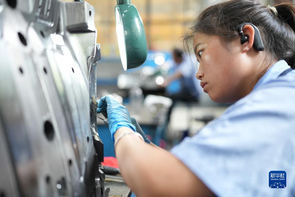8月9日,在臺州市黃巖區國家級專(zhuān)精特新“小巨人”企業(yè)浙江賽豪實(shí)業(yè)有限公司,工作人員對模具進(jìn)行鏡面拋光。