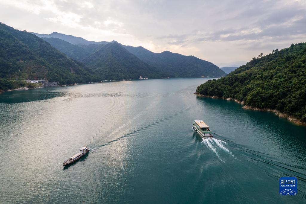 8月9日,游船行駛在資興市東江湖風(fēng)景區(無(wú)人機照片)。
