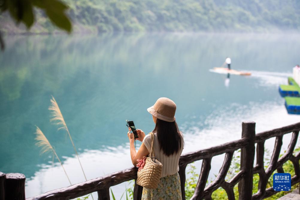 8月9日,游客在資興市東江湖風(fēng)景區游玩、拍照。