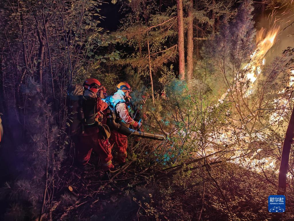 8月8日,內蒙古呼倫貝爾市森林消防支隊官兵在內蒙古大興安嶺林區內滅火。