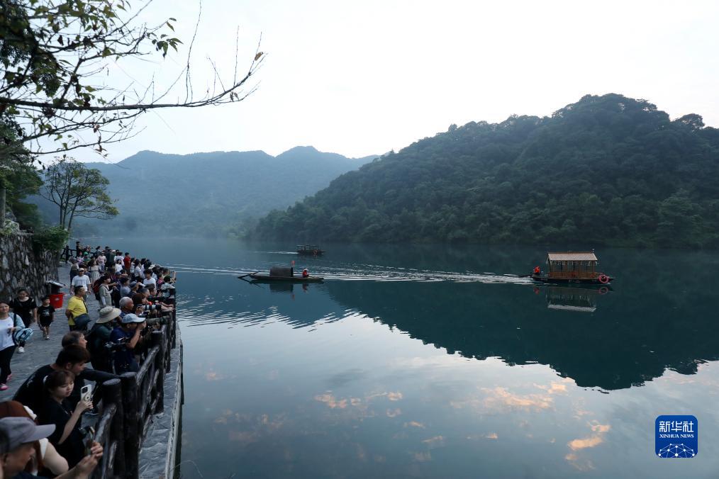 8月9日,游客在湖南省資興市東江湖景區小東江景點(diǎn)游玩賞景。