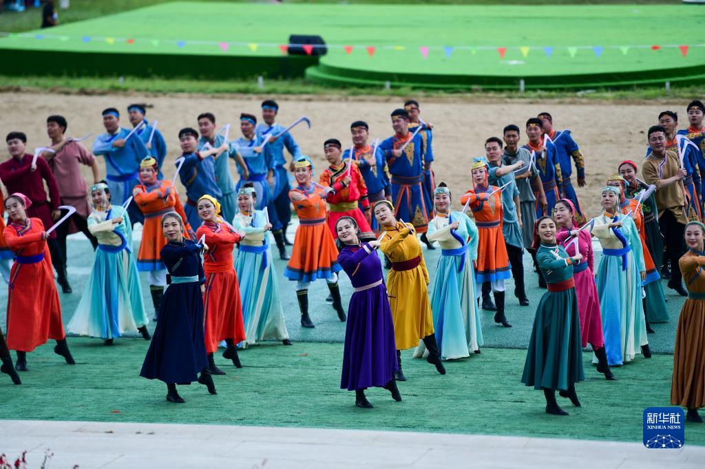 8月9日,演員在2023興安盟那達慕開(kāi)幕式上表演。