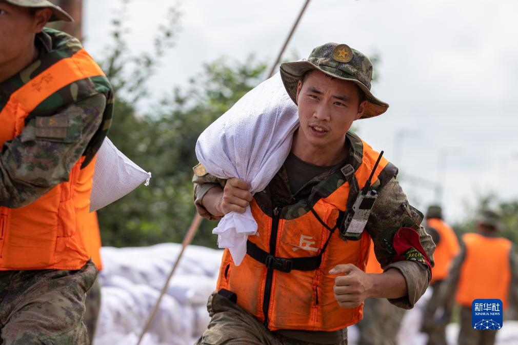裝滿(mǎn)沙袋,扛上肩頭,疾速前進(jìn)……一名名年輕官兵身穿迷彩服和救生衣,將一個(gè)個(gè)白色沙袋筑成一道長(cháng)約兩公里的“白色長(cháng)城”。8日正午時(shí)分,在黑龍江省哈爾濱市雙城區萬(wàn)隆鄉增產(chǎn)村,來(lái)自陸軍第78集團軍某旅的800余名官兵奮戰在抗洪一線(xiàn)。
