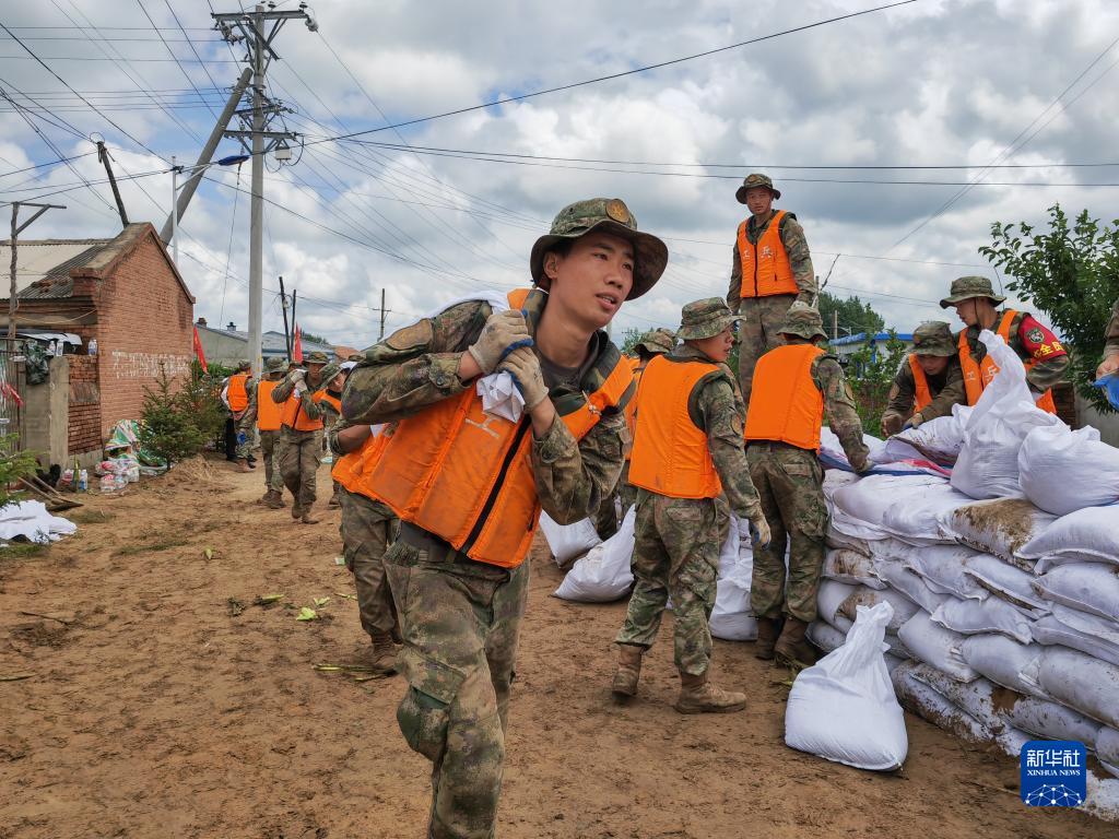 裝滿(mǎn)沙袋,扛上肩頭,疾速前進(jìn)……一名名年輕官兵身穿迷彩服和救生衣,將一個(gè)個(gè)白色沙袋筑成一道長(cháng)約兩公里的“白色長(cháng)城”。8日正午時(shí)分,在黑龍江省哈爾濱市雙城區萬(wàn)隆鄉增產(chǎn)村,來(lái)自陸軍第78集團軍某旅的800余名官兵奮戰在抗洪一線(xiàn)。