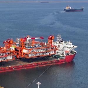 這是8月9日在天津濱海新區拍攝的渤中19-6凝析氣田I期開(kāi)發(fā)項目組塊裝船作業(yè)現場(chǎng)。組塊裝船后將赴渤海西部海域,進(jìn)入海上安裝和聯(lián)調階段。