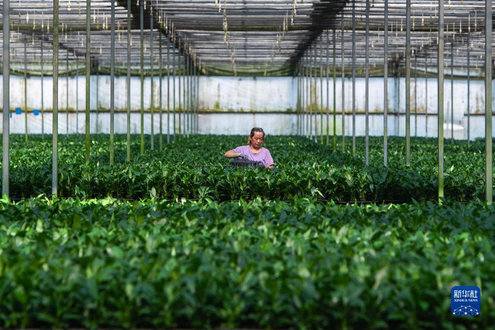 8月9日,鐘祥市柴湖鎮農青園藝花卉大棚,花農在管護花卉。