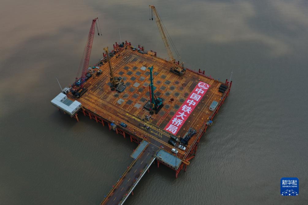 新華全媒+丨杭州灣跨海鐵路橋施工取得突破性進(jìn)展