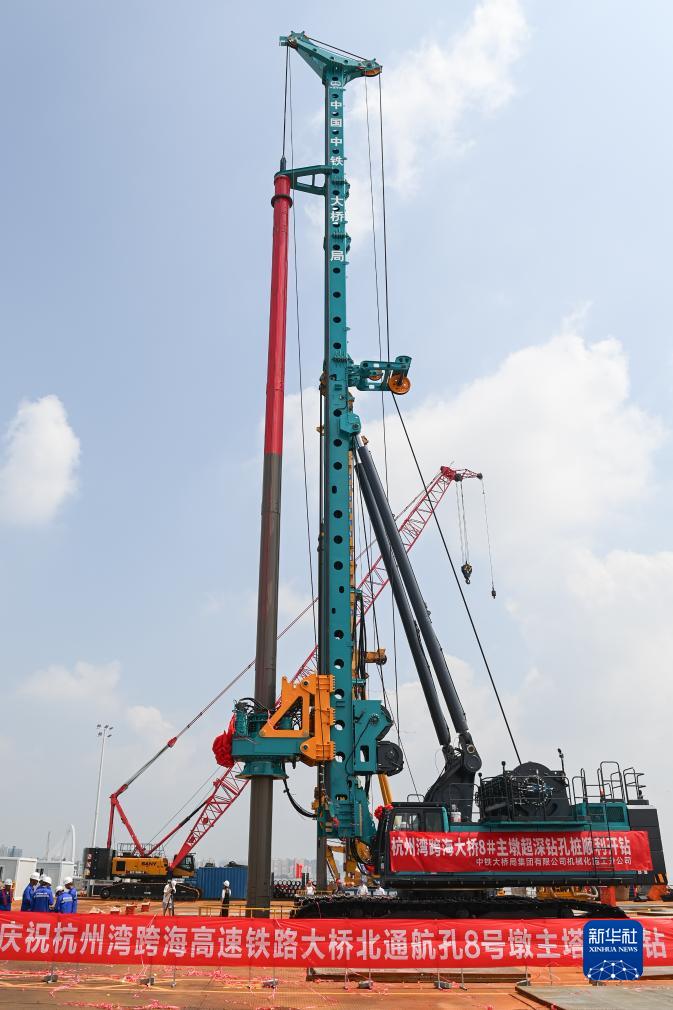 杭州灣跨海鐵路橋全長(cháng)29.2公里,包括北、中、南3座航道橋和跨大堤、海中、淺灘區引橋,屬超長(cháng)高速鐵路橋梁集群工程。此次中鐵大橋局施工的北航道橋8號主塔墩鉆孔樁率先開(kāi)鉆。