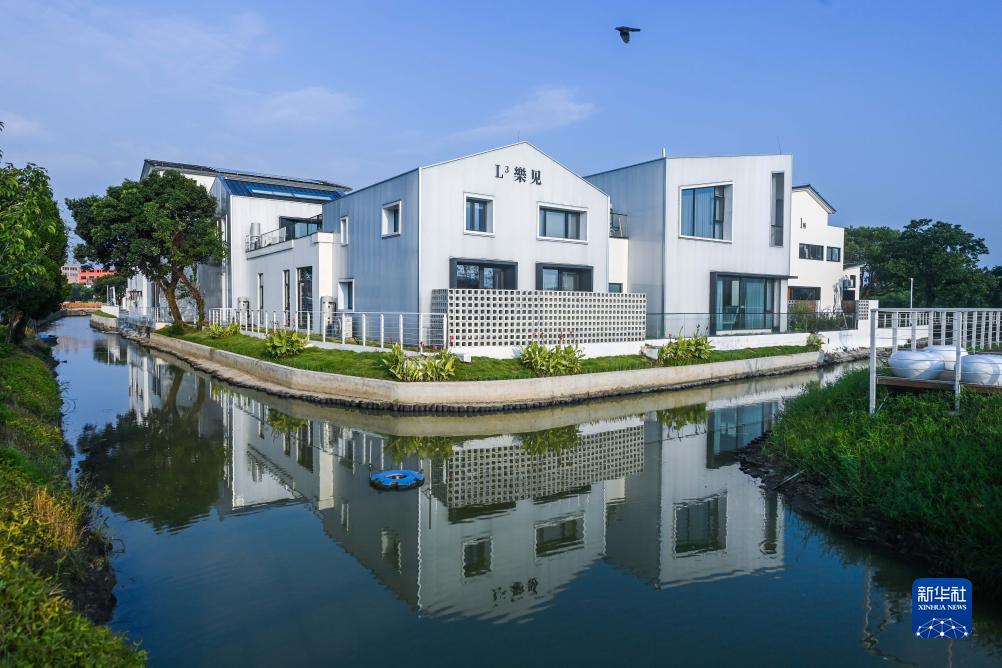 8月9日拍攝的寧波市鎮海區莊市街道永旺村的“野與望鄉村青創(chuàng )集”特色街區。永旺村通過(guò)盤(pán)活農村閑置農田和農房,完善“農業(yè)+”鄉村旅游產(chǎn)業(yè)鏈,并引入科創(chuàng )文創(chuàng )產(chǎn)業(yè),打造集零售、餐飲、休閑等服務(wù)功能于一體的特色商業(yè)街,不斷豐富鄉村業(yè)態(tài),走出一條獨具特色的共富新路子。