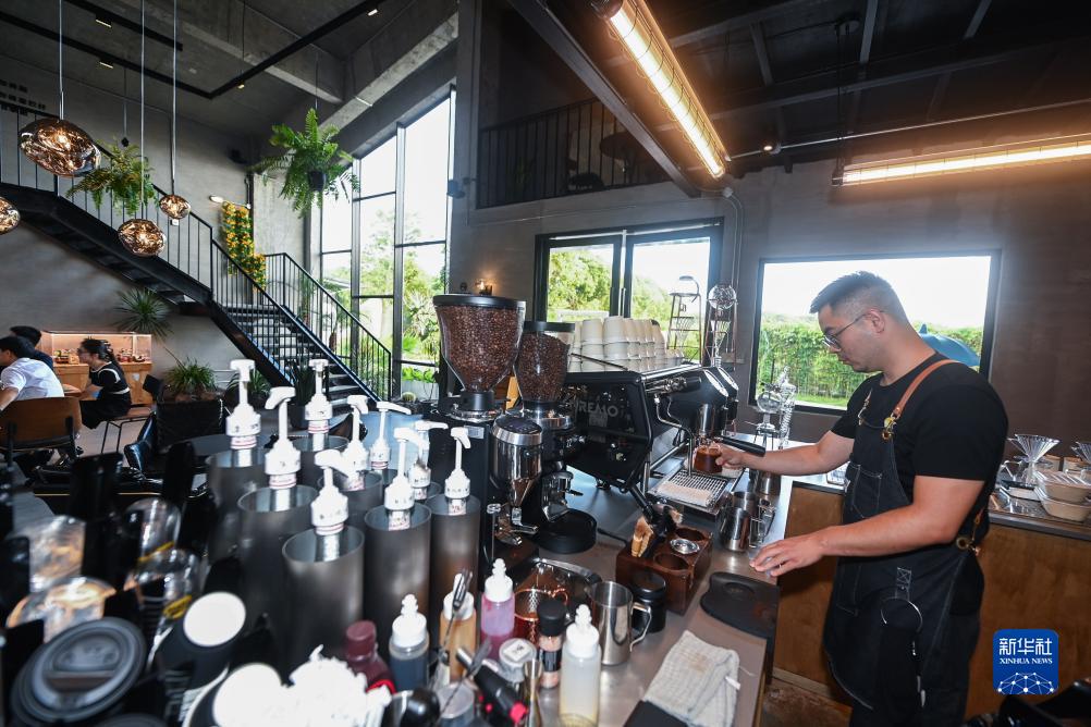 8月9日,在寧波市鎮海區莊市街道永旺村的“野與望鄉村青創(chuàng )集”特色街區的咖啡屋內,店員在做咖啡。永旺村通過(guò)盤(pán)活農村閑置農田和農房,完善“農業(yè)+”鄉村旅游產(chǎn)業(yè)鏈,并引入科創(chuàng )文創(chuàng )產(chǎn)業(yè),打造集零售、餐飲、休閑等服務(wù)功能于一體的特色商業(yè)街,不斷豐富鄉村業(yè)態(tài),走出一條獨具特色的共富新路子。