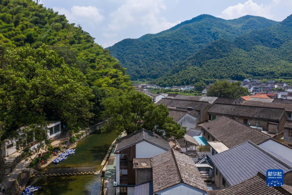 8月10日拍攝的群山環(huán)繞的寧波市鄞州區城楊村,該村是寧波“最美精品線(xiàn)路”的重要節點(diǎn)(無(wú)人機照片)。2020年城楊村積極推動(dòng)特色鄉村旅游產(chǎn)業(yè)發(fā)展,集體經(jīng)濟年收入從不足10萬(wàn)元發(fā)展到如今年收入已超50萬(wàn)元,每年接待游客超15萬(wàn)人次。