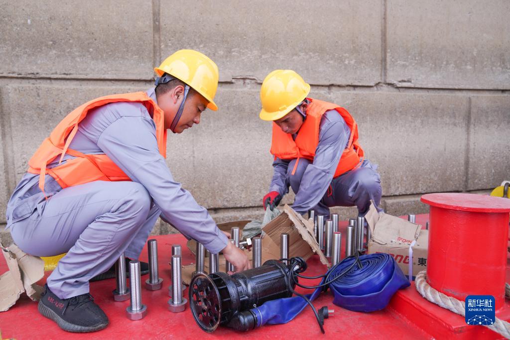 8月10日,中國鐵路上海局集團有限公司工作人員對南京長(cháng)江大橋橋墩防撞設施進(jìn)行安裝。