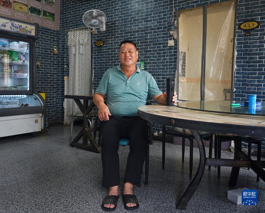 2023年7月16日,在江西省九江市永修縣吳城鎮,退捕漁民甘華濱在自家開(kāi)辦的“甘哥燒菜館”留影。