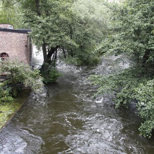 這是8月10日拍攝的位于挪威首都奧斯陸市區的阿克河。挪威水利部門(mén)數據顯示,由于近期強降雨引發(fā)的洪水,阿克河流量增至平時(shí)的10倍以上。