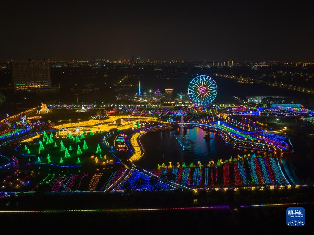 8月10日拍攝的寧波市江北區達人村景區夜景(無(wú)人機照片)。
