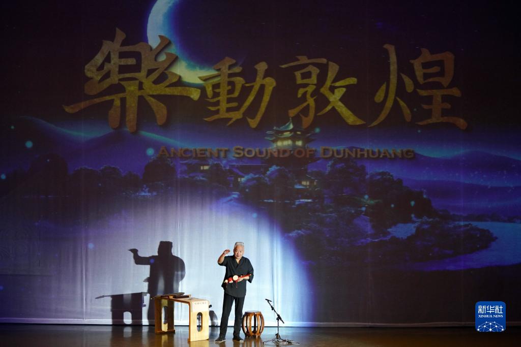 8月9日,在《樂(lè )動(dòng)敦煌》演出現場(chǎng),敦煌古樂(lè )全球推廣大使、國樂(lè )藝術(shù)家方錦龍在向觀(guān)眾介紹傳統音樂(lè )。