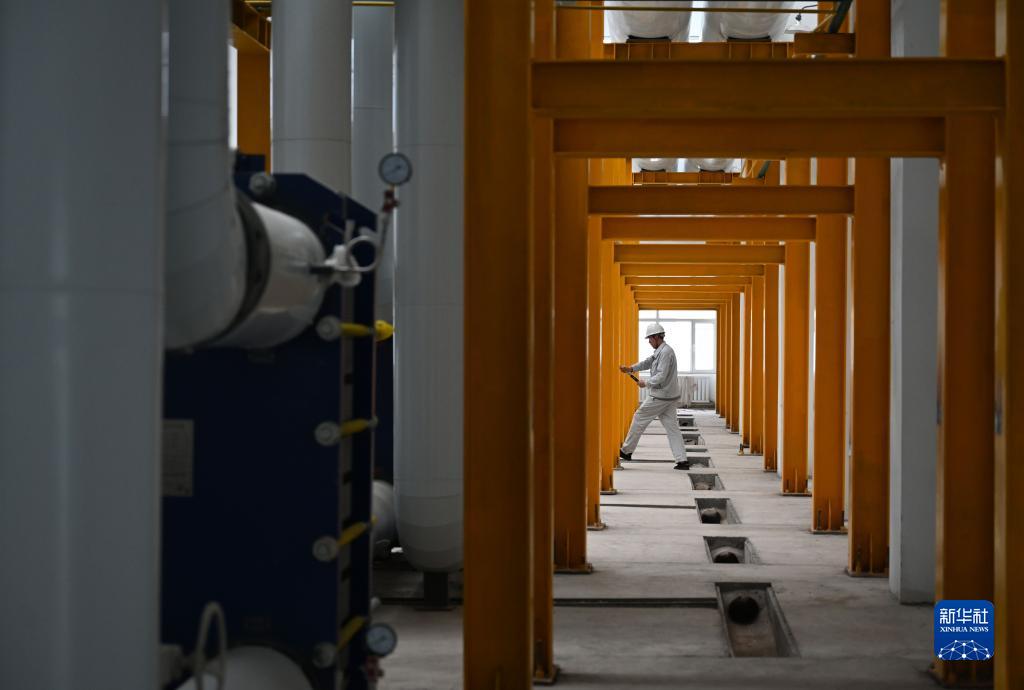 8月10日,工人在中國能建承建的張掖經(jīng)開(kāi)區零碳熱源廠(chǎng)施工。
