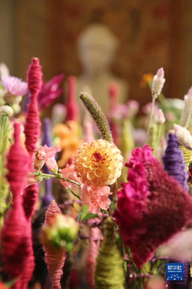 這是8月11日在比利時(shí)布魯塞爾“鮮花時(shí)光”展覽上拍攝的花藝作品。
